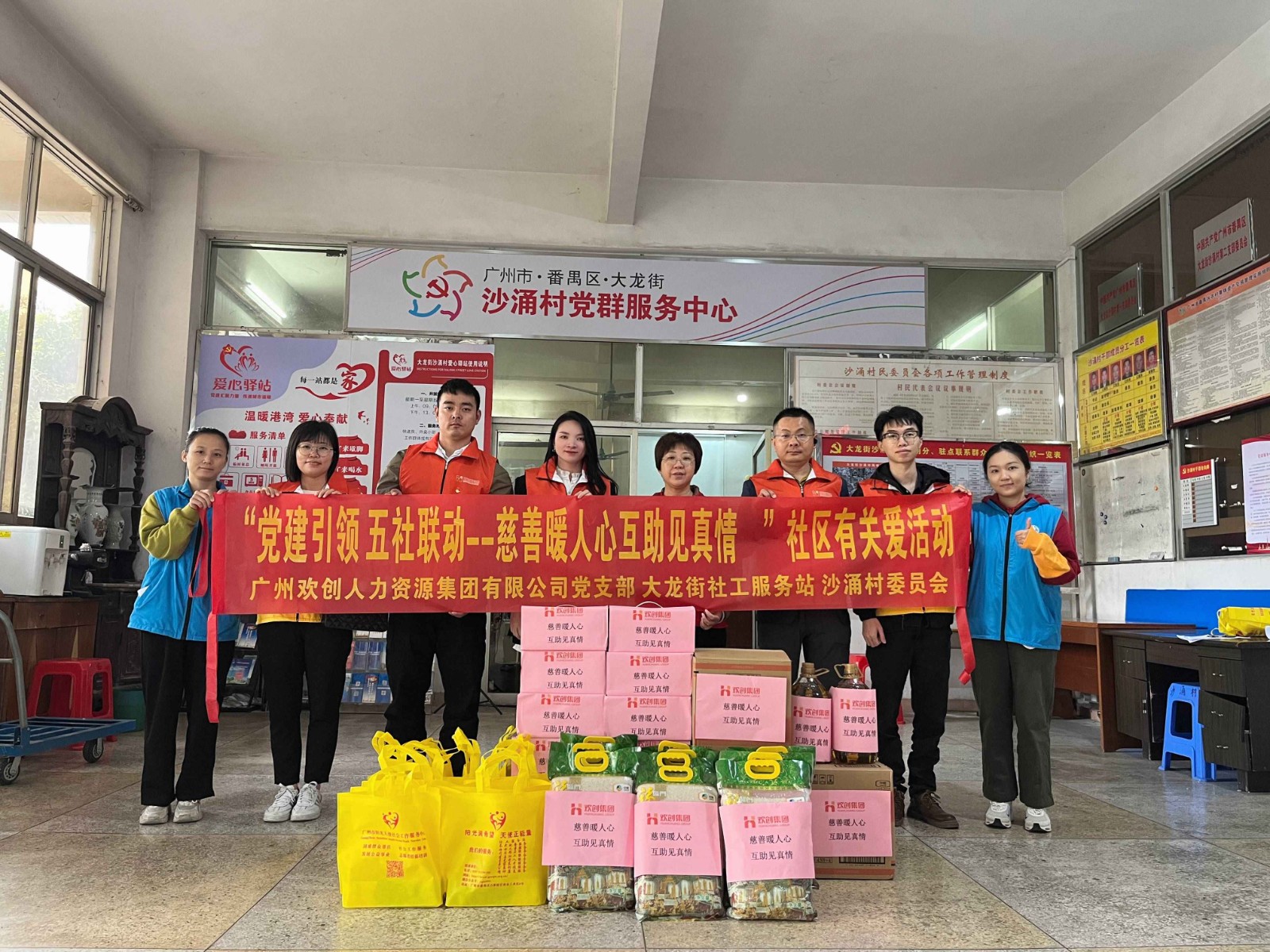 11月16日下午,欢创集团根据“党建引领 五社联动”的思路,与大龙街社工服务站、沙涌村委联合开展了一场“慈善暖人心 互助见真情”的社区关爱活动。欢创集团党支部书记、总裁陈文舒同志带领志愿者团队入户探访困境家庭,亲手送上生活用品,给予暖声细语的问候。