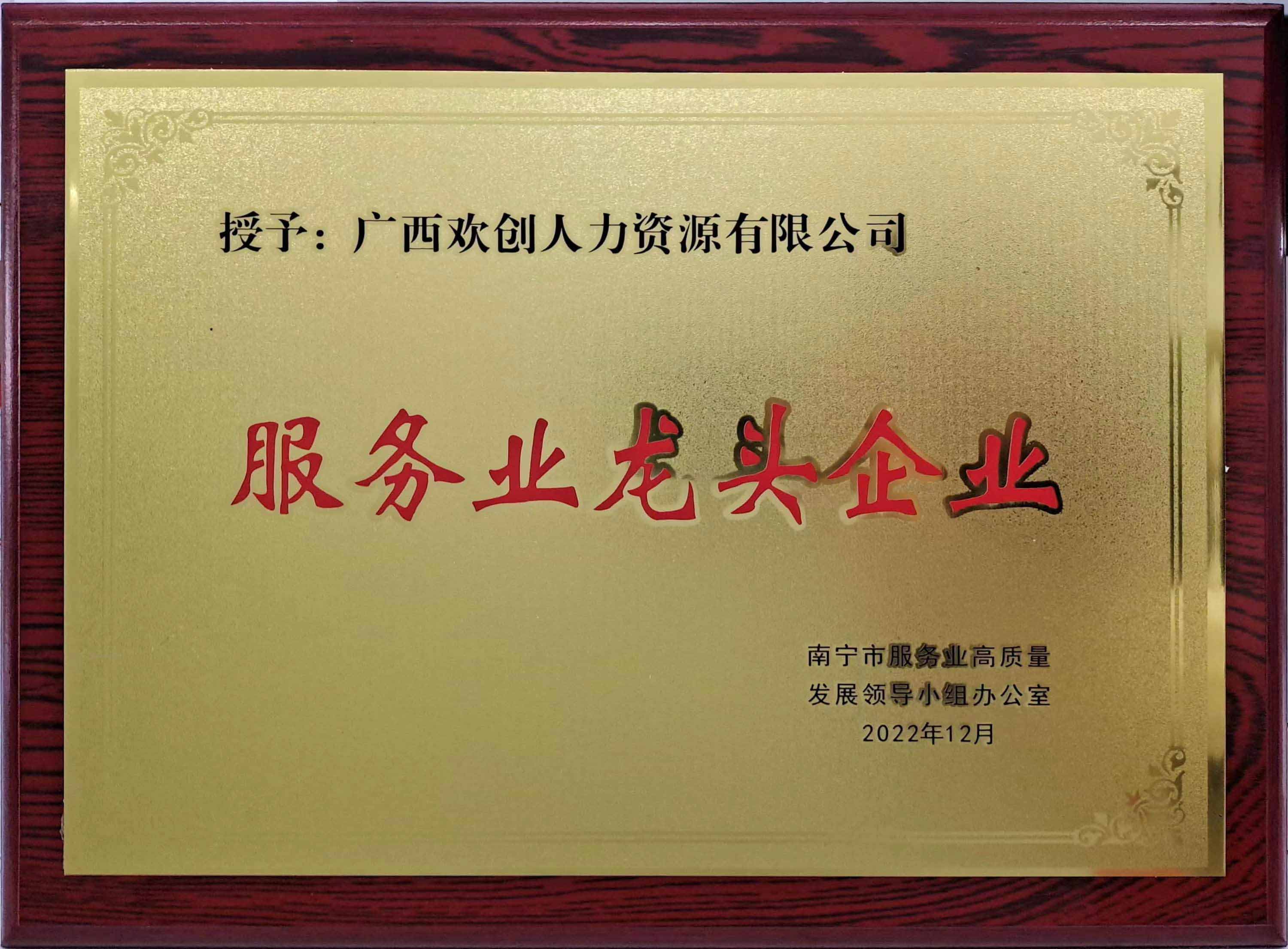 1、欢创广西公司被认定为“南宁市服务业龙头企业”