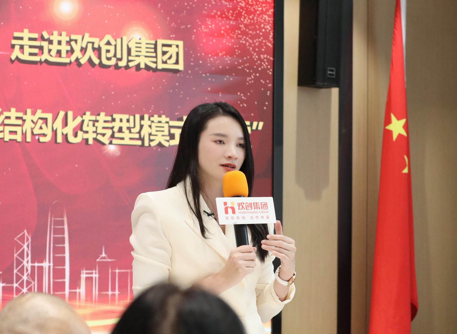 活动中,陈文舒书记向参会嘉宾们详细地介绍了欢创集团发展历程、业务板块及获得的成绩。在介绍过程中,她谈到自己的创业历程,从当初大学时期主动帮助同学解决兼职问题到欢创集团的成立,再到如今企业的发展壮大,每一个阶段都充满了挑战和机遇。在谈及企业文化时,她表示欢创集团非常重视员工的培养与成长,一家企业的成功不仅仅取决于领导者的智慧和决策,更取决于员工的素质和能力,因此欢创集团一直致力于建立积极向上的工作环境,为员工提供良好的培训和发展机会,充分发挥员工自己的潜力和个人价值。